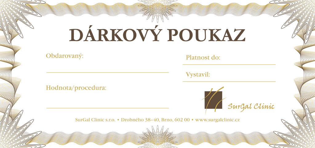 Dárkové poukazy můžete zakoupit na recepci SurGal Clinic: po-pá, 8:00–15:00. Naše recepční Vám s výběrem vhodné péče rády pomohou!